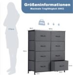 Attention to the FULL-size: This bedroom dresser features fabric bins, providing space-saving storage for magazines, adult or ‘s clothing, , and more. The wooden top board can support up to 66 pounds and can even serve as a TV stand. Please confirm the dimensions of this 8-drawer dresser: 11.81″ D x 31.4″ W x 36.3″ H.