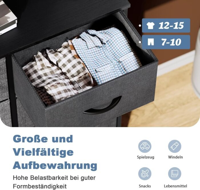 Versatile Use: This dresser offers versatility in its usage. It can be seamlessly integrated with your existing furniture, serving as a TV stand in the living room, a nightstand bedside table, or wardrobe in the bedroom, or a shoe cabinet in the porch, entryway, or hallway. Weighing only about 26 lbs, this lightweight fabric organizer can be effortlessly moved anywhere you desire.