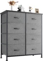 Plenty Storage Space: With 8 large drawers, this dresser offers generous storage capacity. You can organize your belongings neatly by dividing the compartments. Each drawer can accommodate at least 12 adult T-shirts or 7 pairs of jeans, while it’s also ideal for socks, underwear, toddler toys, etc. If you have multiple dressers, they can be stacked to save space.