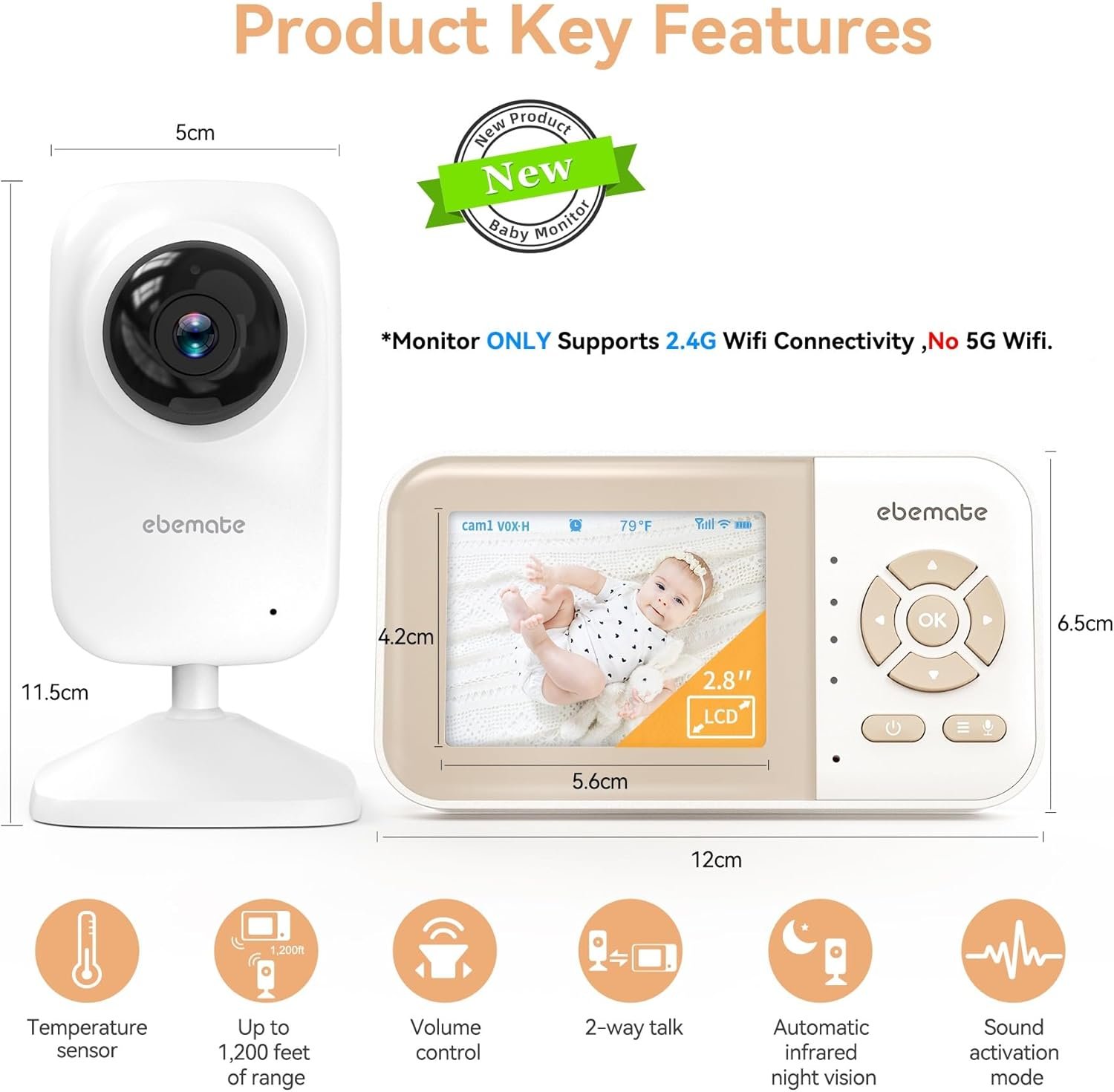 Video Baby Monitor & Multi-Scene:Ebemate Video Baby Monitor Camera With 2.8″ Hd Screen. It Is Plug-And Play Baby Camera Easy Used For All Ages Of People,Especially For The Elderly.You Can Use Monitor To Look Baby,Home,Cute Pet Or Anythings.