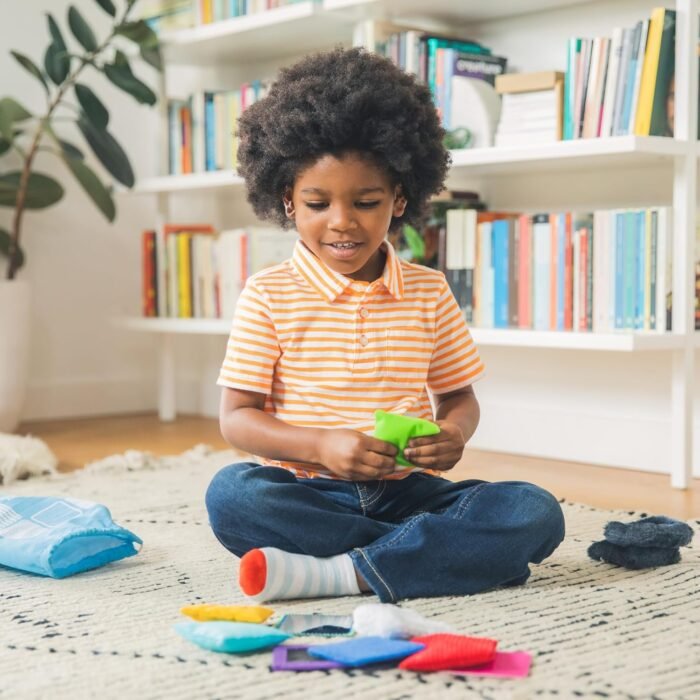 Scratchy, slippery, silky, or soft? With these sensory square, young learners build tactile awareness and vocabulary skills, as well as fine motor skills, as they interact with these 20 texture squares (10 different pairs). The activity possibilities are endless! Includes a tip sheet packed with fun activities that touch on matching, vocabulary, communication, and tactile discrimination skills. Add to your calm down corner, playroom, classroom, or basket of therapy tools for kids! Each textured pillow measures 2″–3″, perfect for small hands. Textures include bumpy, furry, fuzzy, nubby, and more. Stores in a handy drawstring bag.