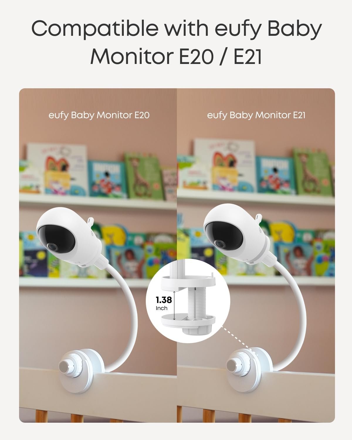 Compatibility: Specially designed crib mount for eufy Baby Monitor E20 and E21, ensuring stable and secure support for the camera.