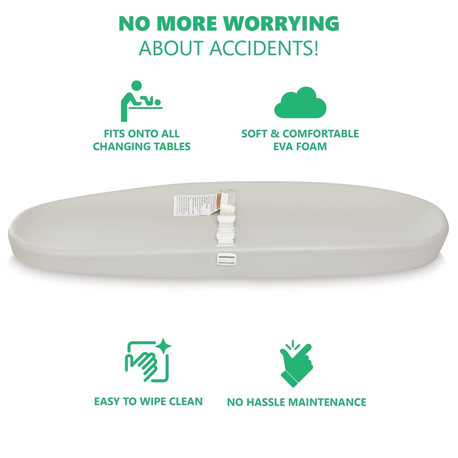 LIGHTWEIGHT & PORTABLE: Featured with contoured walls and made of solid, sturdy construction, the lightweight & portable Evolur Eva Changing Pad fits onto all changing tables.