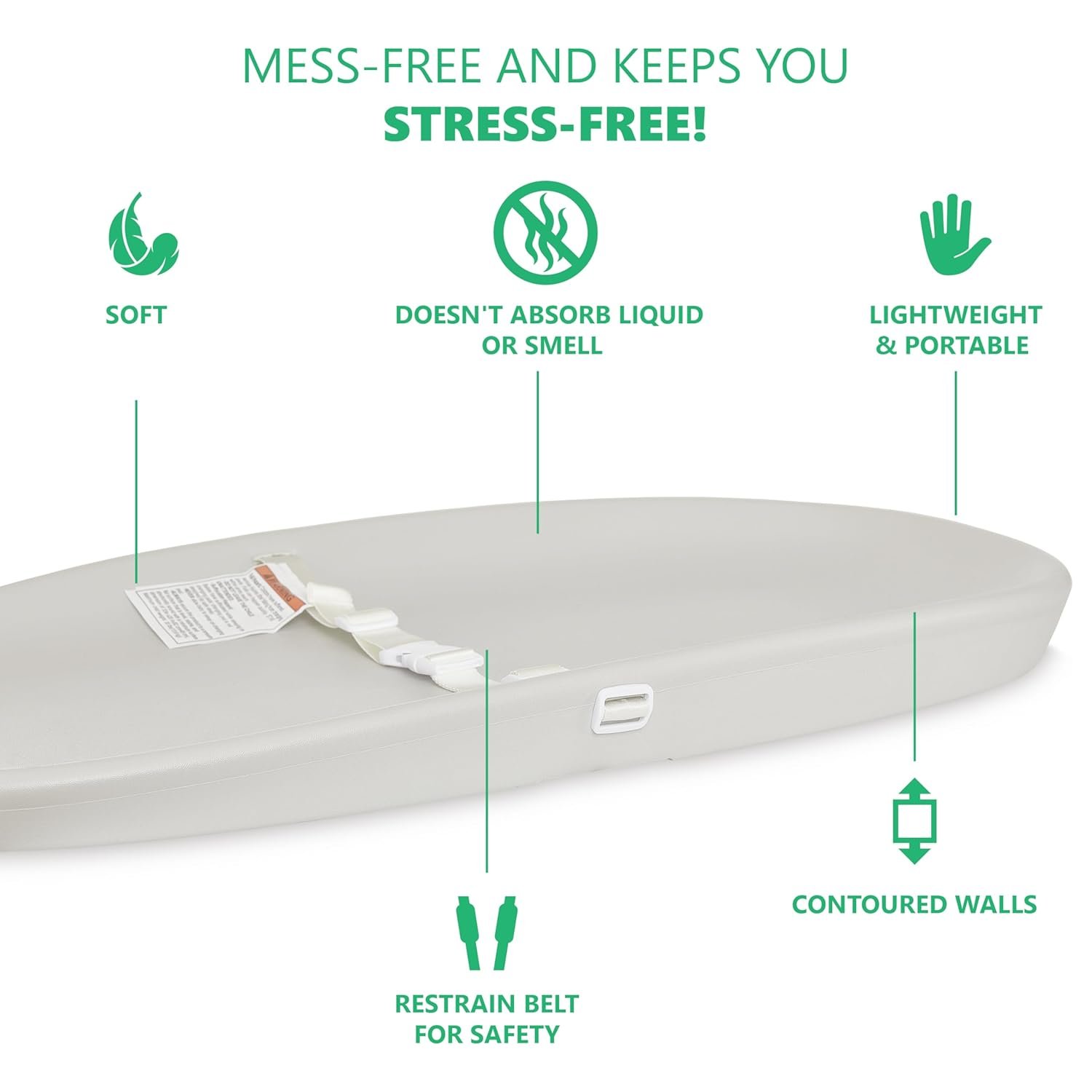 COMFORT & PROTECTION: This soft and comfortable changing pad features a restraint belt to securely strap your little one in place while changing