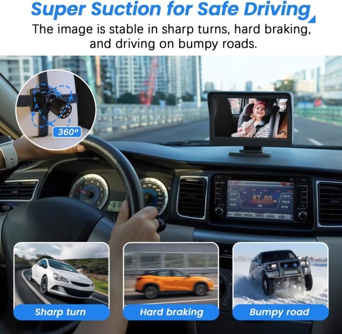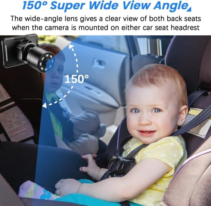 360° Rotating Adjustable & 150° Wide View: The car camera for baby can rotate 360°, so no matter where your child is sitting, you can see your baby accurately by adjusting the angle of the baby camera for car. What’s more, the 150° wide-angle lens of this car baby camera can fully cover the scene you need to view. Keep your adorable baby in sight.