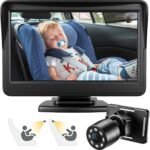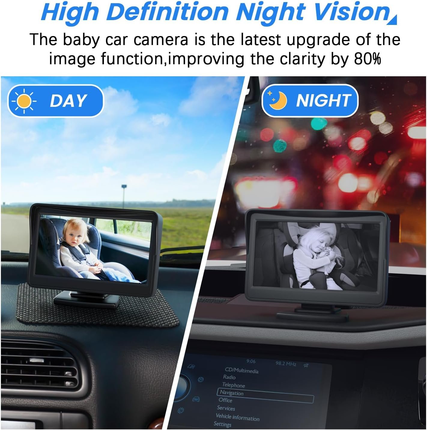 Upgraded Infrared Night Vision Function: The backseat camera for baby adopts 940nm infrared night vision technology. It can automatically switch to night vision according to the light intensity and capture baby’s movements in low-light conditions without irritating baby’s eyes. Whether it is day or night, the car baby monitor can present high-definition images, eliminating worries and anxiety when driving at night.