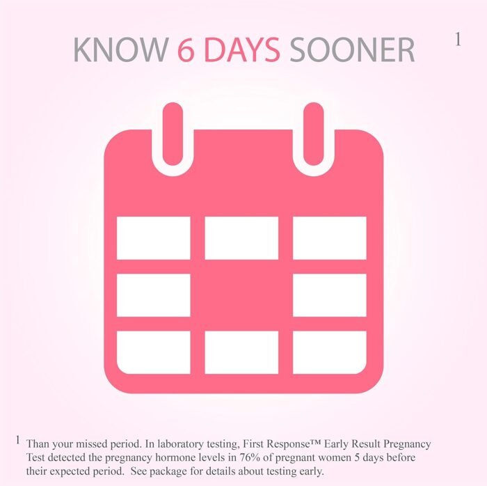 The version we send is the OLD version as the picture and NOT the curved handle version. Results 5 days sooner (First Response can detect the pregnancy hormone 5 days sooner than the day of your missed period.) First to detect the pregnancy hormone (Versus digital-read tests). Over 99% accurate (99% Accurate at detecting typical pregnancy hormone levels. Note that hormone levels vary. See insert.) Easy to read with easy read result line. Now you no longer have to wait until you miss your period! In clinical testing, First Response detected the hormone levels in 69% of women 4 days before their expected period, in 83% of women 3 days before their expected period, in 93% of women 2 days before their expected period, and in 93% of women 1 day before ther expected period. For in-vitro diagnostic use. This Kit Contains: 2 – First Response Early Result Pregnancy Test Sticks and Instructions (in English and Spanish). The version we send is the OLD version as the picture and NOT the curved handle version. Results 5 days sooner (First Response can detect the pregnancy hormone 5 days sooner than the day of your missed period.) First to detect the pregnancy hormone (Versus digital-read tests). Over 99% accurate (99% Accurate at detecting typical pregnancy hormone levels. Note that hormone levels vary. See insert.) Easy to read with easy read result line. Now you no longer have to wait until you miss your period! In clinical testing, First Response detected the hormone levels in 69% of women 4 days before their expected period, in 83% of women 3 days before their expected period, in 93% of women 2 days before their expected period, and in 93% of women 1 day before ther expected period. For in-vitro diagnostic use. This Kit Contains: 2 – First Response Early Result Pregnancy Test Sticks and Instructions (in English and Spanish).