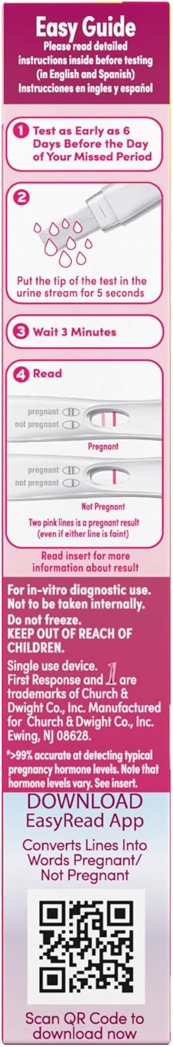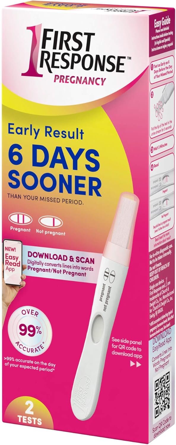 Now you no longer have to wait until you miss your period! First Response can detect the pregnancy hormone five days sooner than the day of your missed period. With an easy-to-read result line, First Response is first to detect the pregnancy hormone