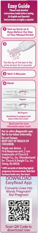 Customers find the pregnancy test accurate and easy to use, with fantastic quality and quick results. They appreciate that it’s easy to read, with one customer noting the second line appears quickly. While some customers consider it a good price point, others find it expensive. The test’s sensitivity receives mixed feedback, with several customers describing it as highly sensitive.