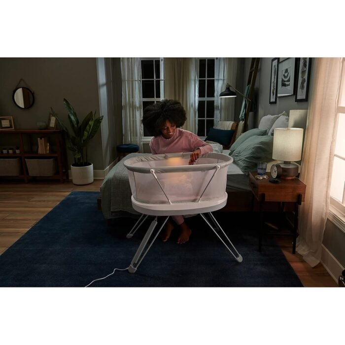 Customers appreciate the bassinet’s vibration feature that helps keep their babies asleep. They find it well-made and stable, with a soft nightlight that illuminates when the sensor is triggered. The mattress is comfortable and firm enough for infant sleeping. Overall, customers are satisfied with the sound quality, ease of assembly, and comfort provided by the bassinet.