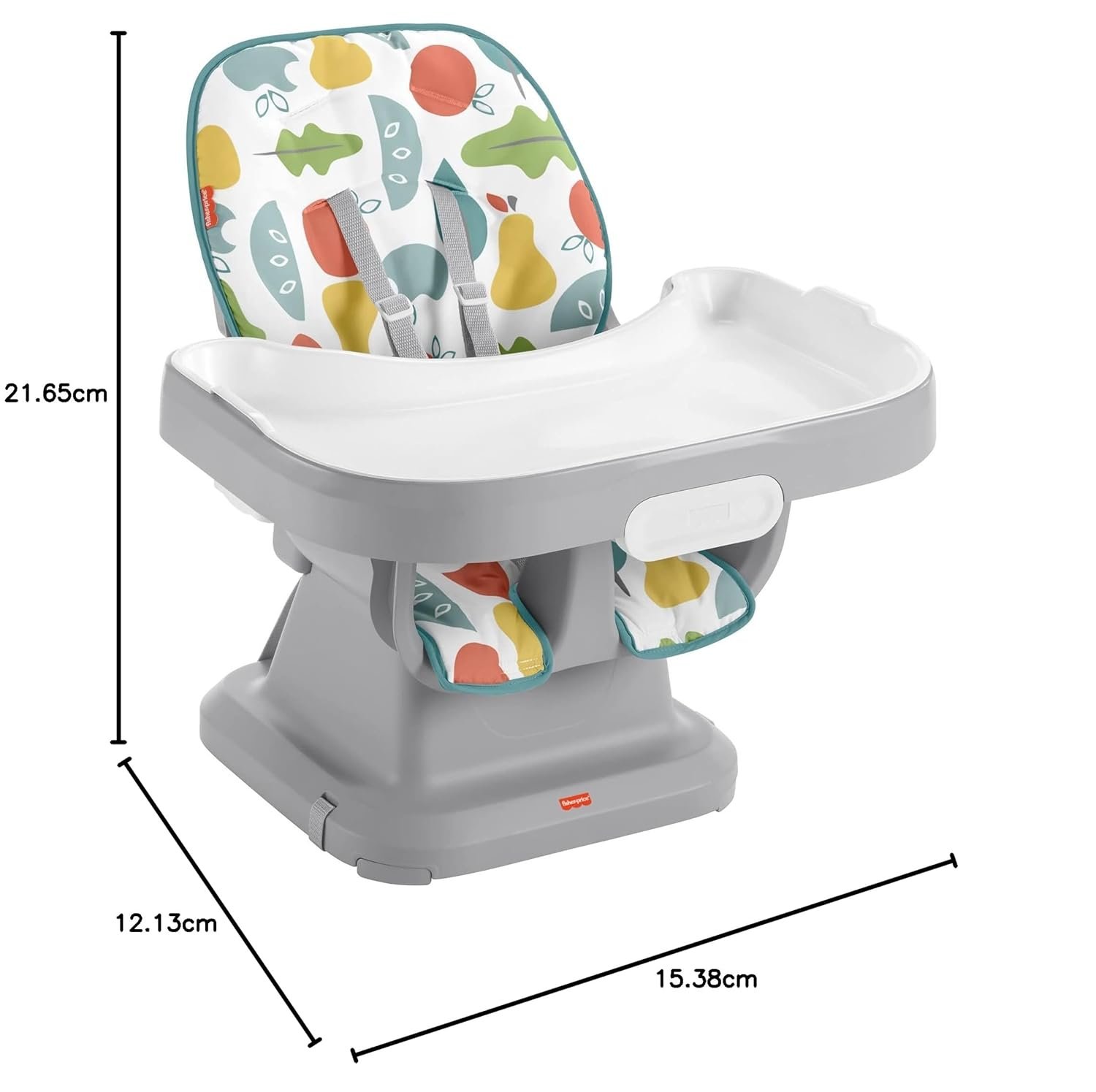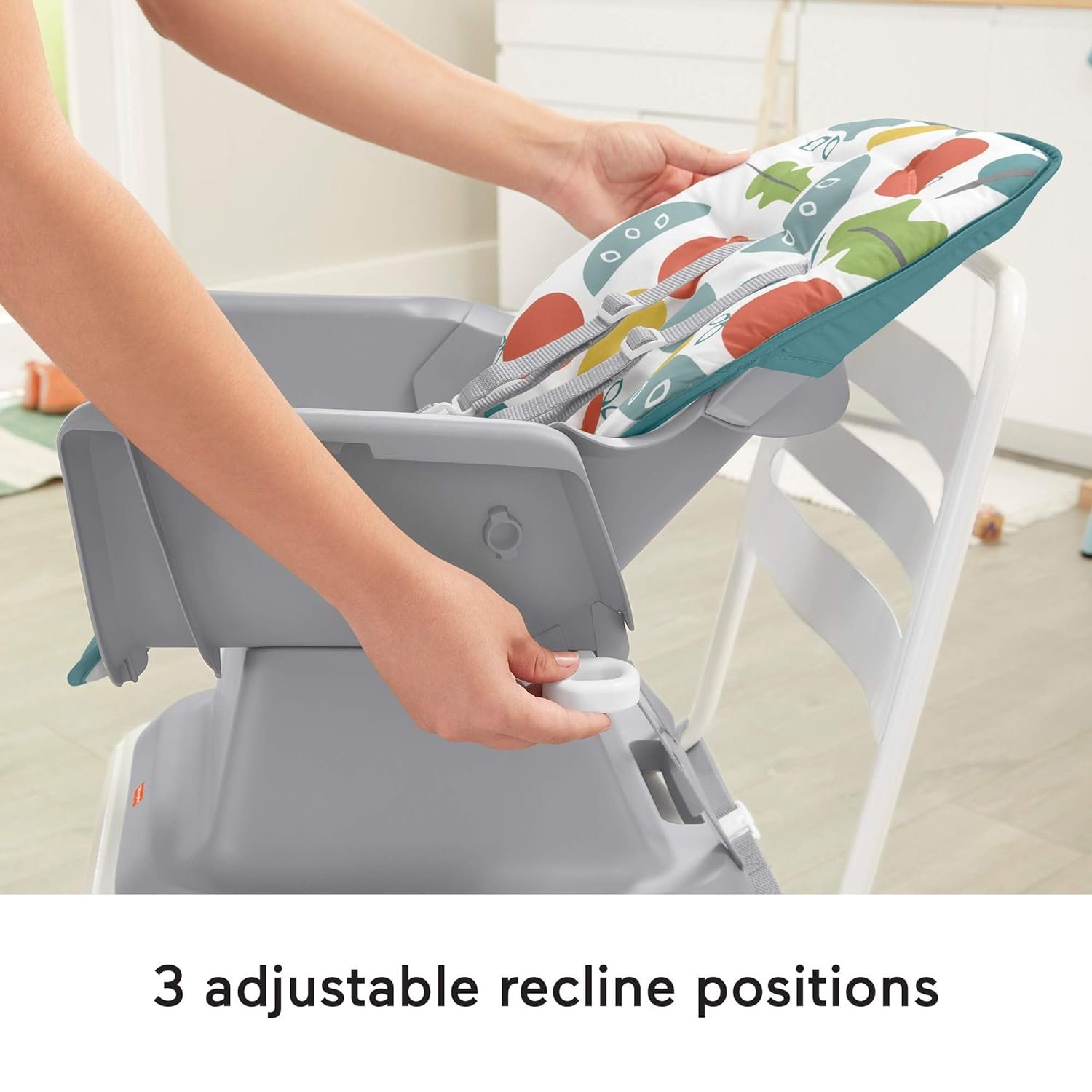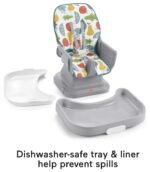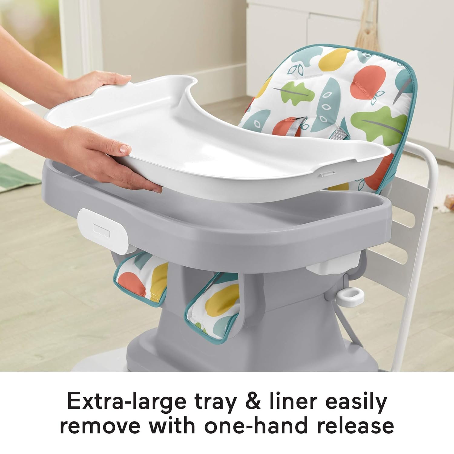With the Fisher-Price SpaceSaver Simple Clean High Chair, you get everything you love from a full-size high chair in a portable size that grows from infant to toddler. Adjust the seat’s recline and tray position to keep your baby comfortable, and then transform it into a toddler booster when your tiny diner is ready. The deep-dish tray with removable tray liner help keep baby from pushing food onto the floor, and the spill-resistant seat pad and harness are machine washable for easy cleaning. Use upright position only with a child who is able to sit up unassisted.