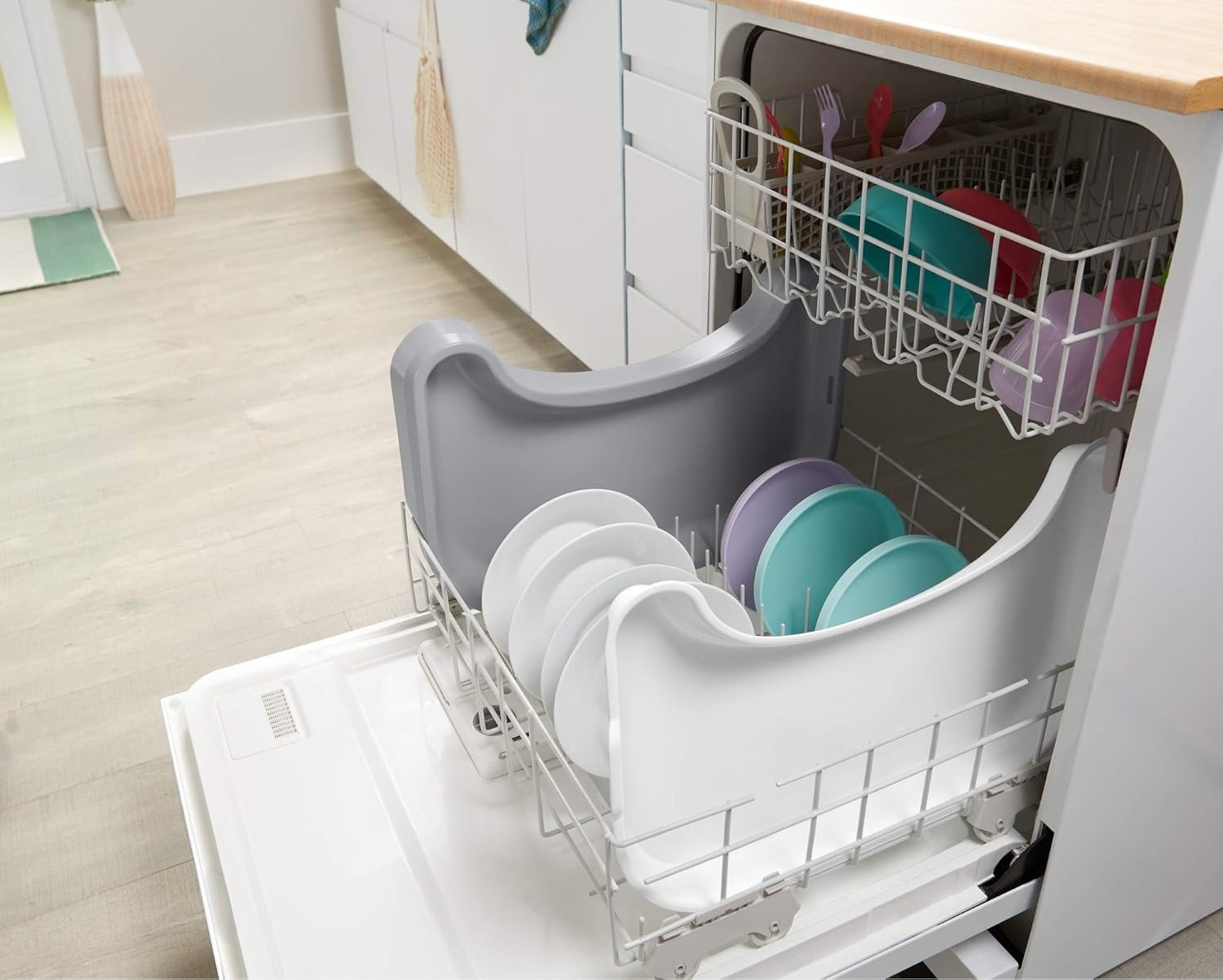 Dishwasher-safe seat, tray and tray liner, plus machine-washable seat pad and 5-point harness