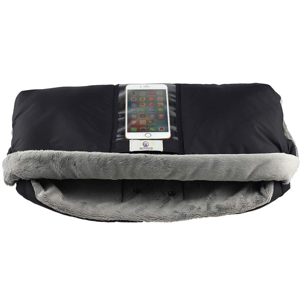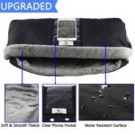 ❀UPGRADED VERSION HAND MUFF: the newest version stroller hand muff, fleece lining is more smooth and soft, add a clear phone pocket in center lets you see and use phone easily through the window.
