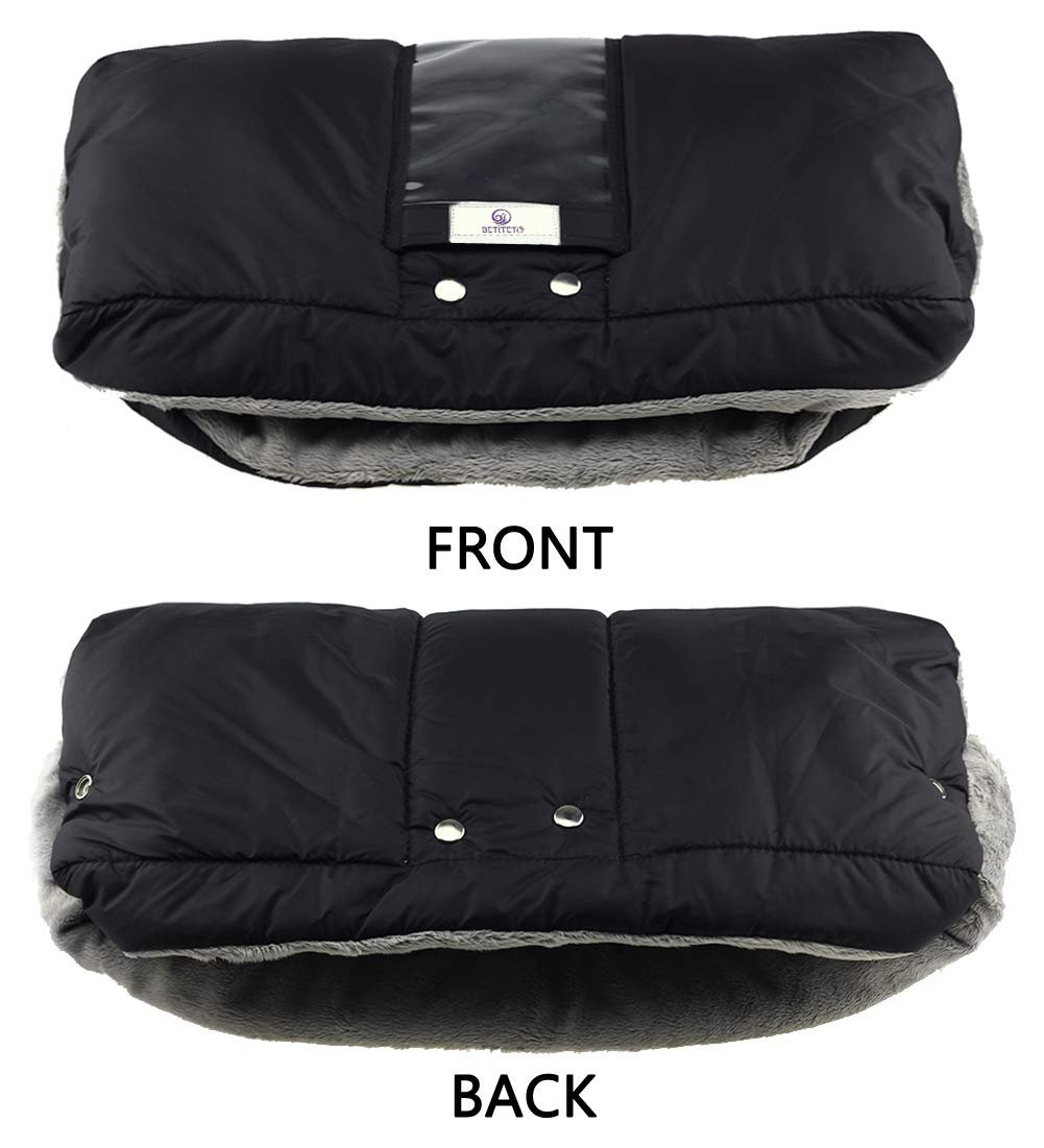 Keeping your hand warm while enjoying strolling with your baby in the stroller outside. This BETITETO Hand Muff Warmer can not only be used as a Stroller Hand Muff but also can be used as a hand warmer at home. It can be installed tightly on a stroller’s handlebar and easy on and off while using. It also features an innovative clear pocket that lets you see and operate your phone through the window.