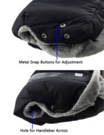 ❀UNIVERAL AND EASY ON /OFF GLOVES: 7 snap buttons ensure easy adjustment and attachment to the sliding handle. Universal fits most single handlebar prams, strollers, pushchair, shopping cart, and more.