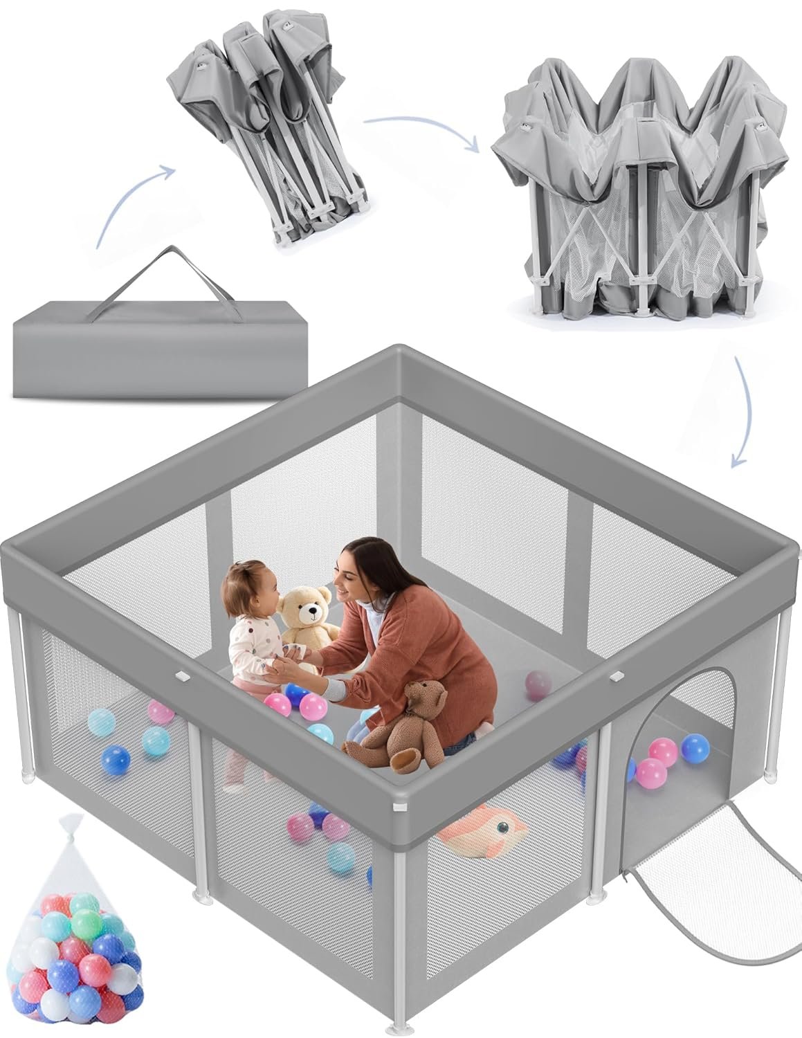 No assembly required: Baby playpen features a brand-new folding technology, ready to use upon opening. Compared to other products, it reduces the difficulty of assembly, saving you valuable time.