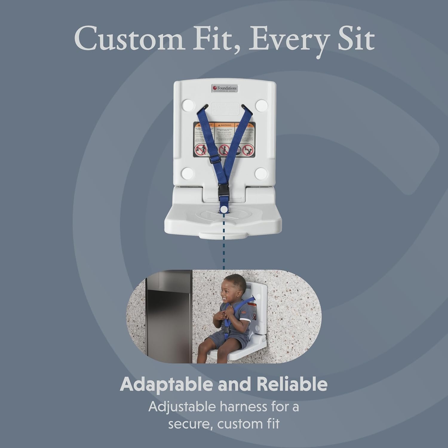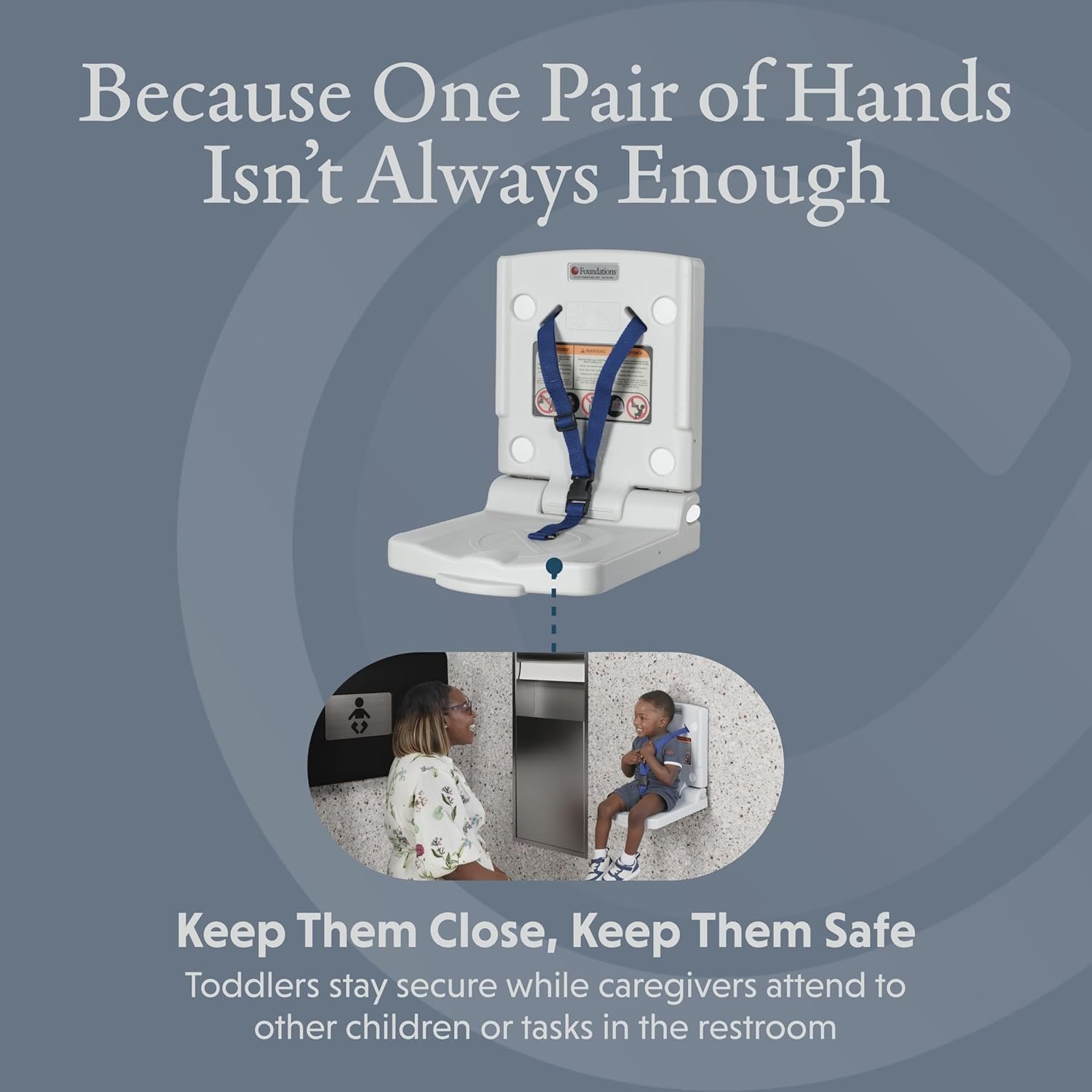 Safe Seating: This safety seat ensures children stay safely in place while adults attend to other tasks in busy public restrooms.