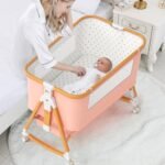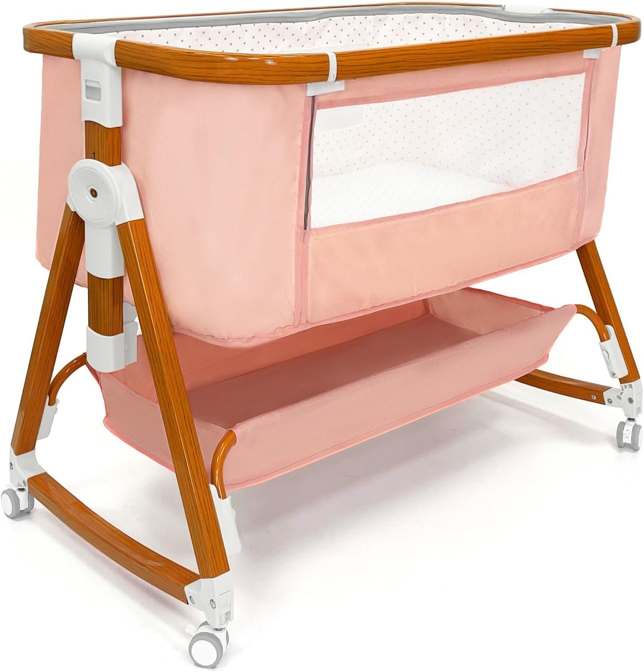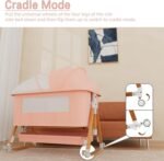 【3-in-1 Crib】: This baby bassinet has three dual modes, simply convert the bassinet wheels to fixed mode to turn it into a crib, and convert the rocking mode to turn it into a baby cradle for baby’s quiet nap; lift up to open one side of the fence and turn it into a baby bedside bassinet