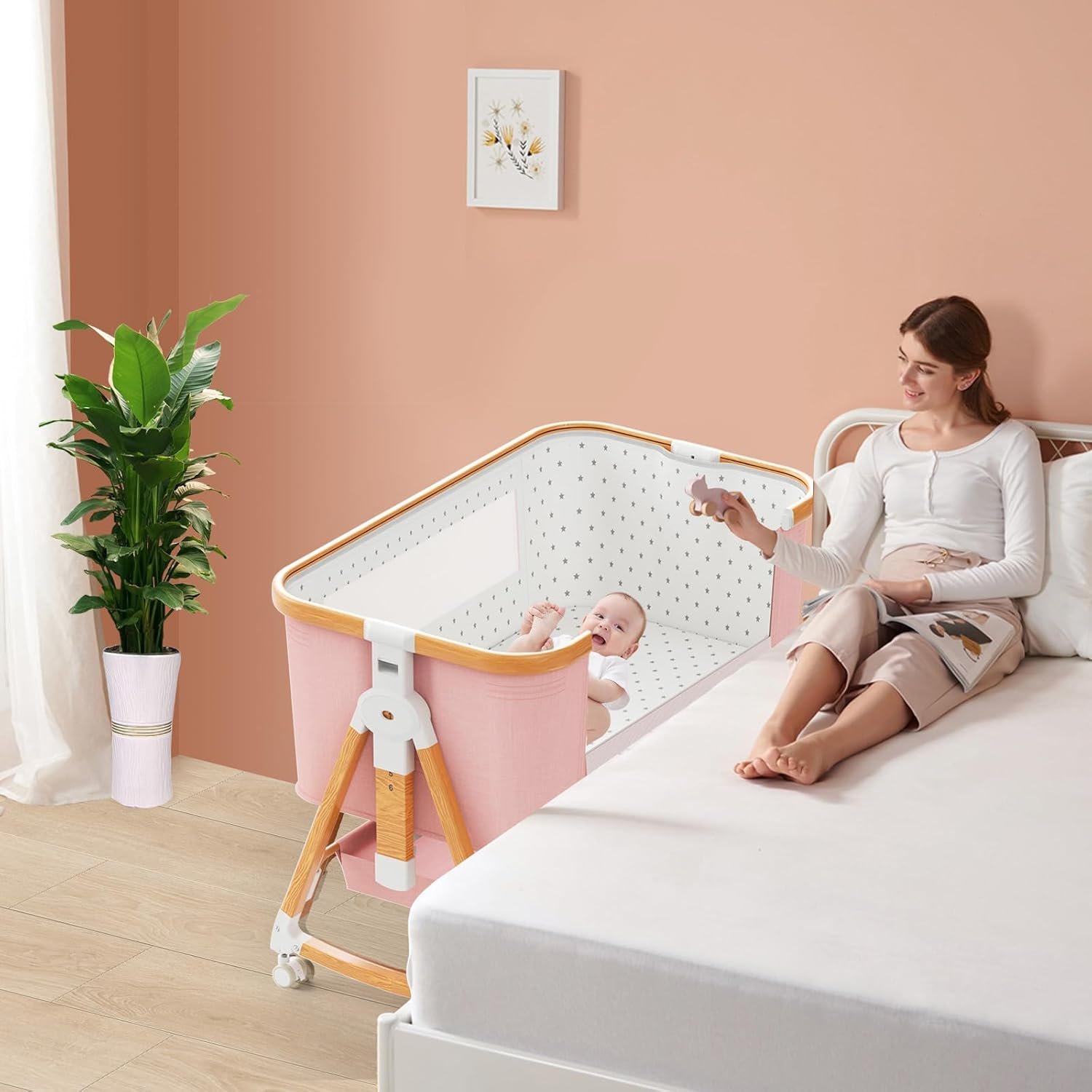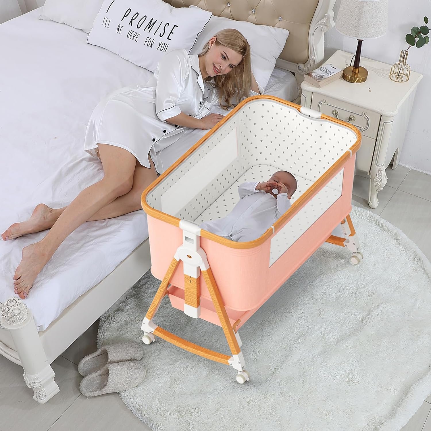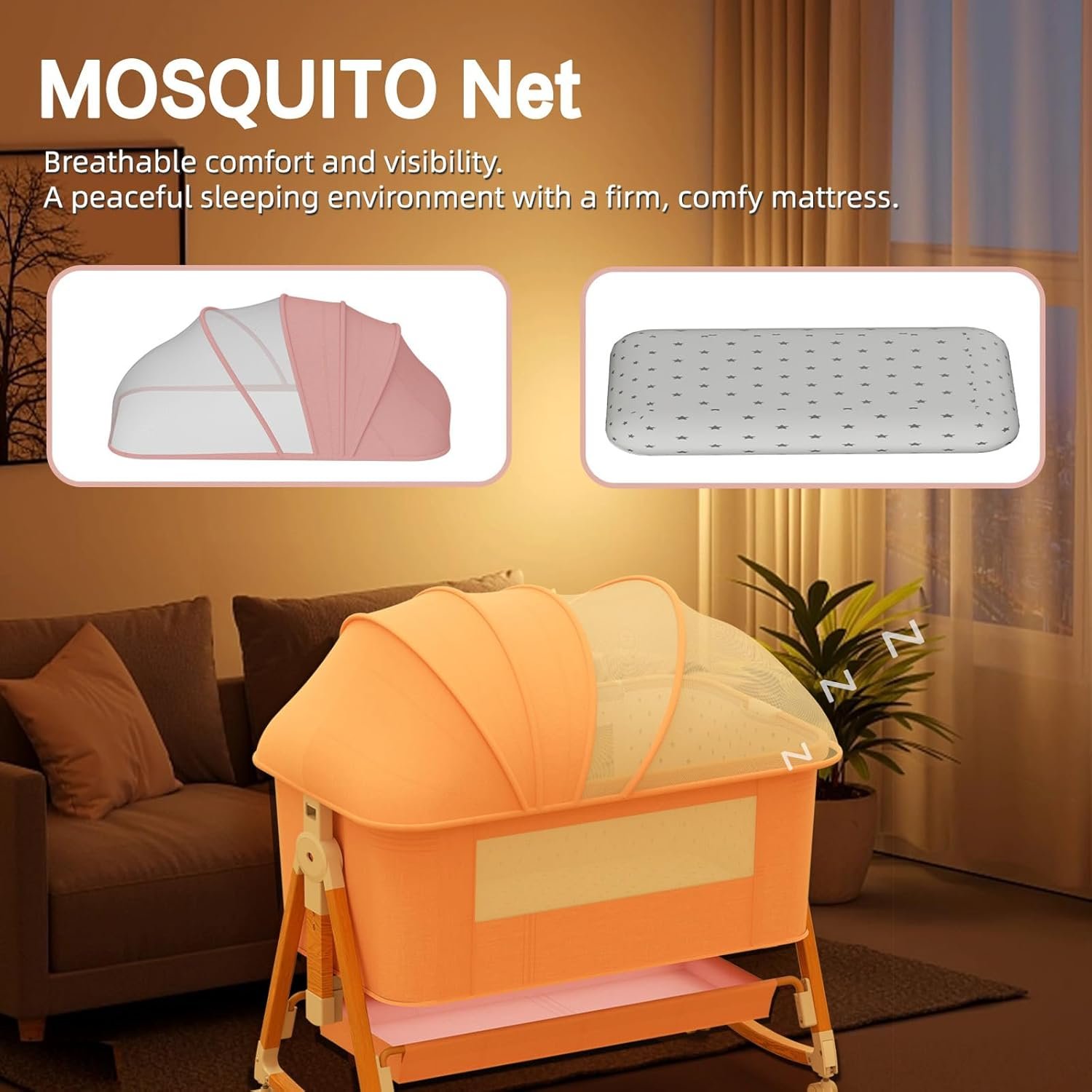 This bedside bassinet has double-sided breathable mesh and mosquito netting, which not only prevents mosquitoes and pets, but also prevents choking hazards and provides a comfortable sleeping environment for your baby.