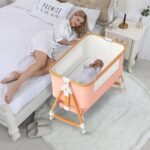 【Multifunctional Design】 The baby bedside sleeper has a double-sided breathable mesh and mosquito netting, which not only protects mosquitoes/pets from bothering, but also prevents the risk of suffocation. This removable baby bassinet is also equipped with 4 360° casters with brakes, which can be easily moved and fixed by the brakes. In addition, there is a large-capacity shelf underneath the bed side bassinet newborn to organize baby’s daily necessities