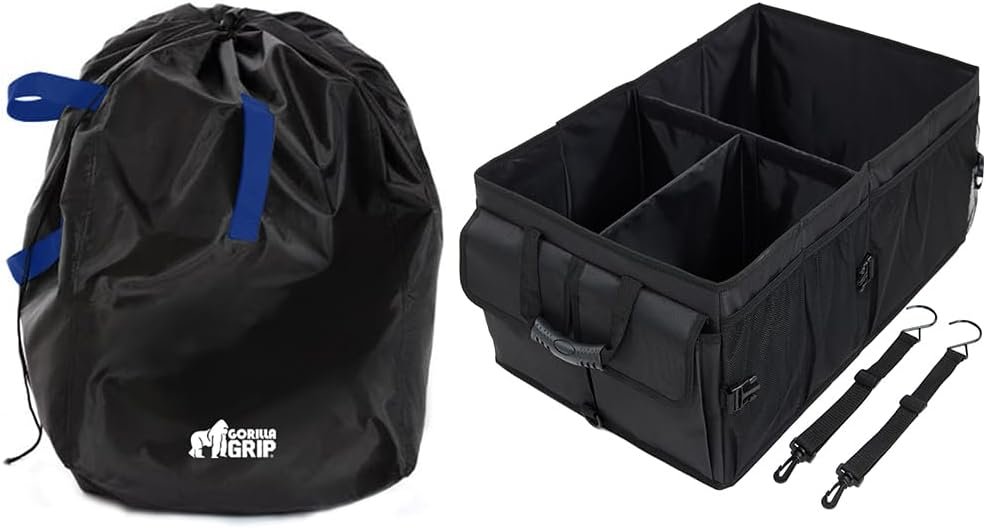 DURABLE PROTECTION FOR YOUR CAR SEAT: a must for traveling, the Gorilla Grip Car Seat Travel Bag is designed to help protect your car seat while you travel; bag is water, tear and dirt resistant; features drawstring closure that tightly closes around the car seat, helping to protect from dirt, grime and moisture; bag is made of lightweight, yet durable material that can be machine washed