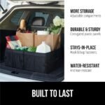 STAYS IN PLACE: nonskid feet on base help to reduce sliding while additional hook and loop strips grip to most carpeting; hook and loop strips include optional covers if not in use; organizer also includes 2 adjustable cargo straps for additional security while driving