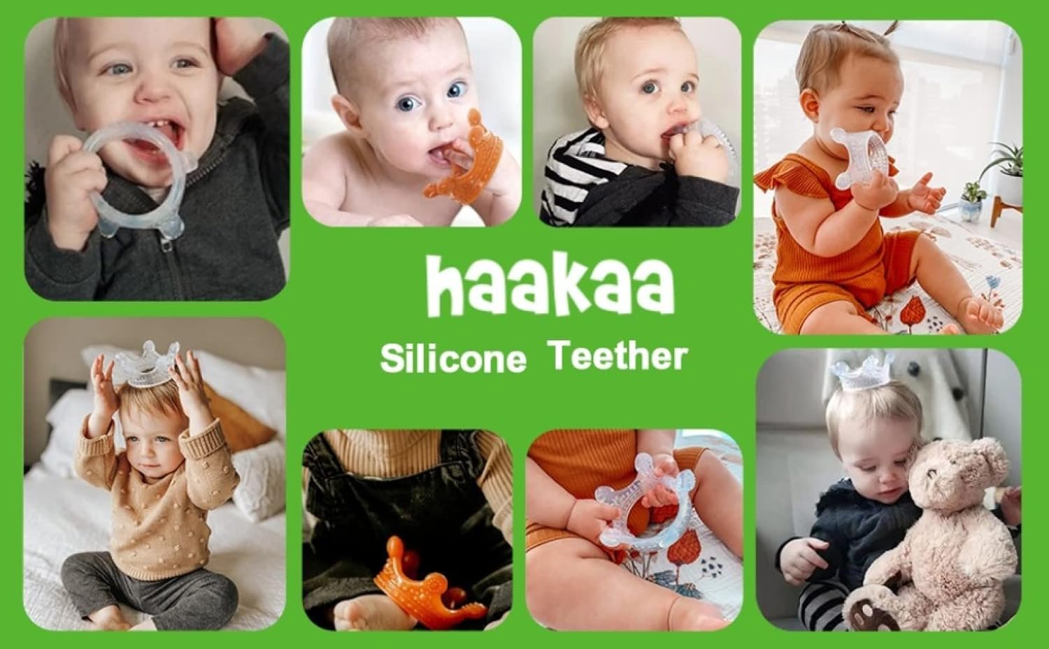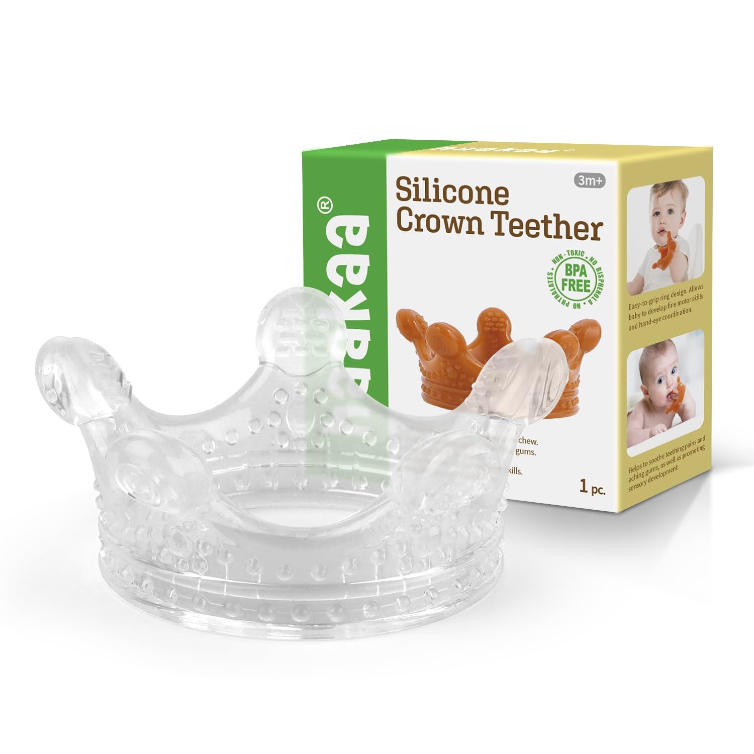 HAAPY TEETHING — Soft silicone teething parts are thin enough to fit in your baby’s mouth help baby through teething time. Parent can also chuck our Crown Baby Teethers in the freezer to provide soothing and cooling relief.