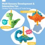 Secure and Easy to Attach: Our dinosaur-themed spiral plush features Velcro on both sides, enabling it to stay extended and securely fasten to any nursery device with handles. This thoughtful design prevents the toys from toppling onto your baby’s face, ensuring safety and peace of mind during travels