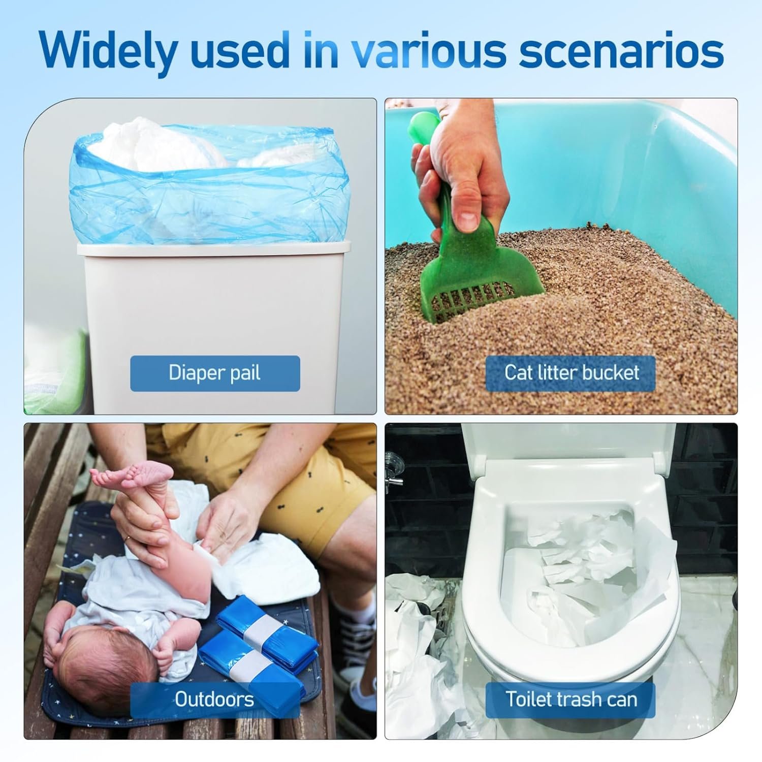 Package Include 5 x diaper pail bags Features -Color:Blue disposable trash bags -Smell locking: By using pe material, our nappy bin liners efficiently hold unwanted smells, preserving a fresh and pleasant atmosphere within your nursery space Diaper Pouch. -Seamless replacement: The rapid and effortless replacing process of these pail liners offer you a streamlined and undisturbed diaper disposal routine Diaper Trash Bags. -Size:450.00X26.00X0.01cm/176.85X10.22X0 diaper bags refill. -Universal compatibility: Our diaper pail bags conform to various diaper pails, integrating smoothly into your present disposal setup without hassle garbage bags. -Ample refill: The sufficient supply of these diaper pail refills allows you to tackle diaper disposal consistently during an extended period rubbish bags. -Material:PE trash containers for diaper -Secure handling: These diaper pail liners significantly reduce the likelihood of leaks and spills, preserving cleanliness and minimizing nursery mess incidents Diaper Organizer Bag. Goods Information diaper bags refill These refills are designed to fit seamlessly into your diaper pail, ensuring a clean and convenient dispose of diapers without compromising on nursery ambiance.garbage bags Keep your nursery fresh with our Diaper Pail Liner Refills, expertly crafted from high-density polyethylene for a tight seal