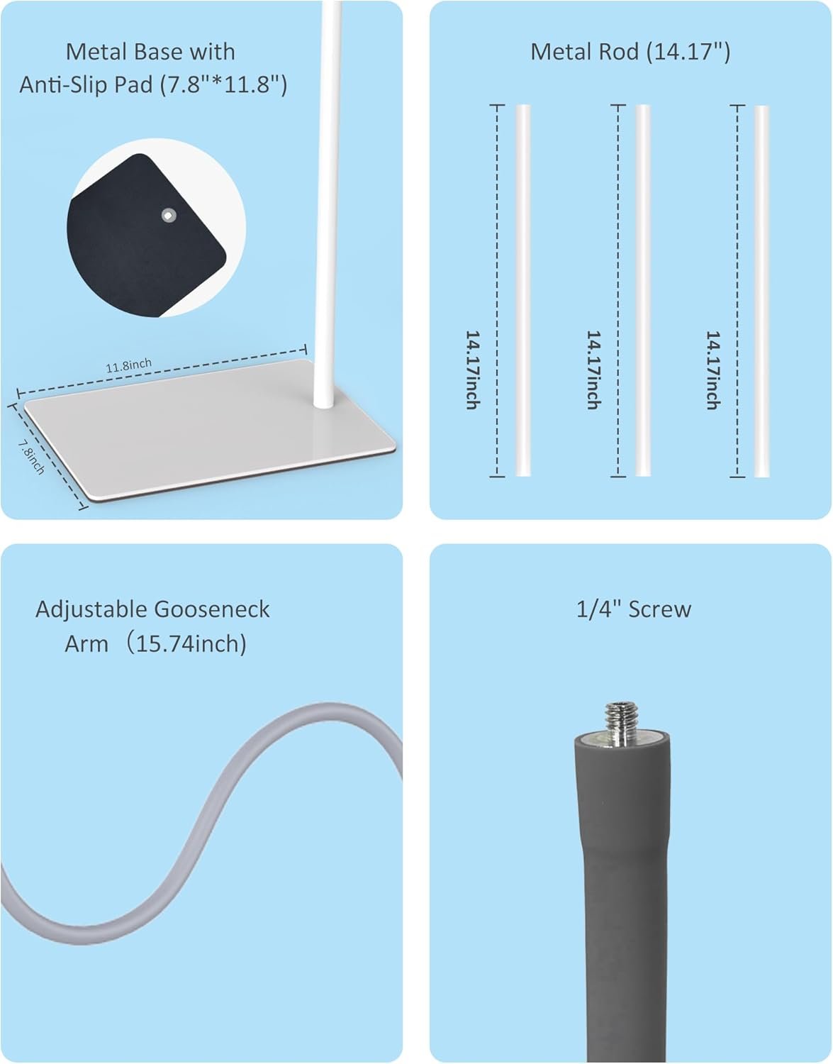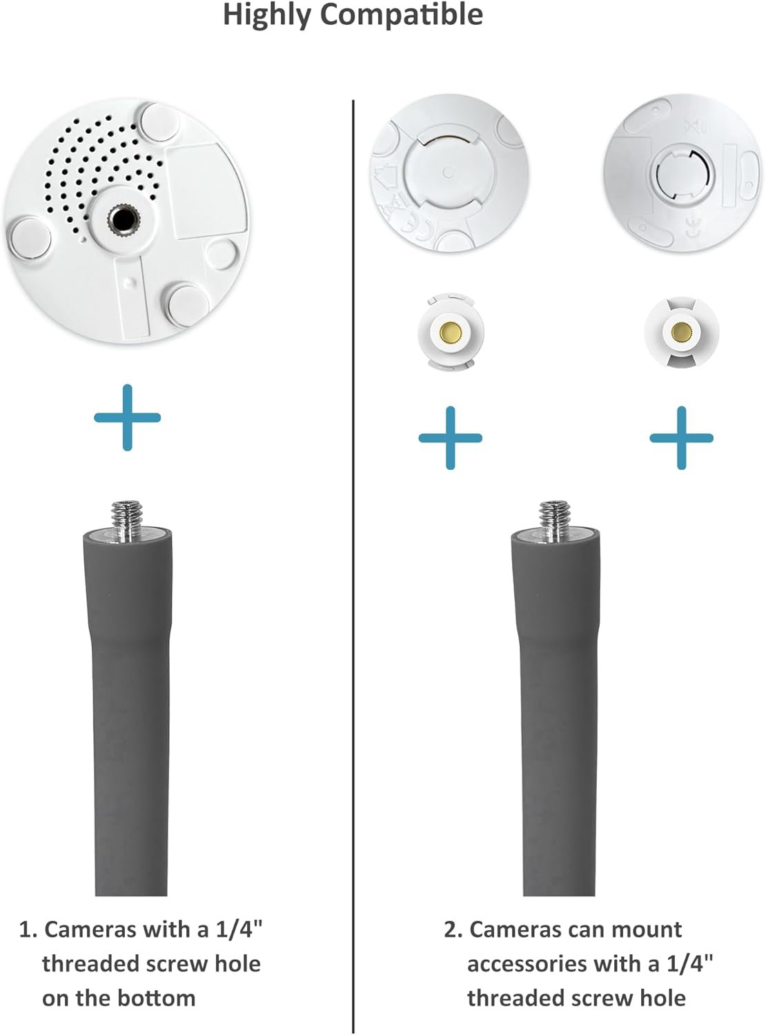 We’ve prepared every step for your baby’s peaceful sleep:First, a sturdy base weighing 1.76kg with anti-slip pads acts as a silent guardian, ensuring everything stays perfectly still.Next, three 14.17-inch metal poles can be freely combined to effortlessly elevate your view to crib height.The most versatile feature is the 15.74-inch adjustable swivel arm, bending to any angle you need to capture those sweetest sleeping faces.The accessory pouch (containing 1 screw and 2 universal 1/4-inch adapter rings) guarantees compatibility and secure installation. Combined with clear setup instructions, you’ll be set up with complete peace of mind in just three easy steps.