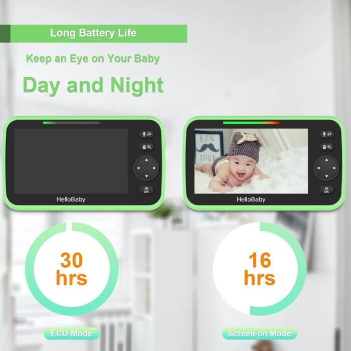 Infrared Night Vision & 2-Way Audio Video Baby Monitoring: Crisp night vision gives you a clear view of your little one as they snooze. We are the first brand to adopt the invisible infrared LED baby monitor, you can have a clear video feed at night without disrupting your little baby.