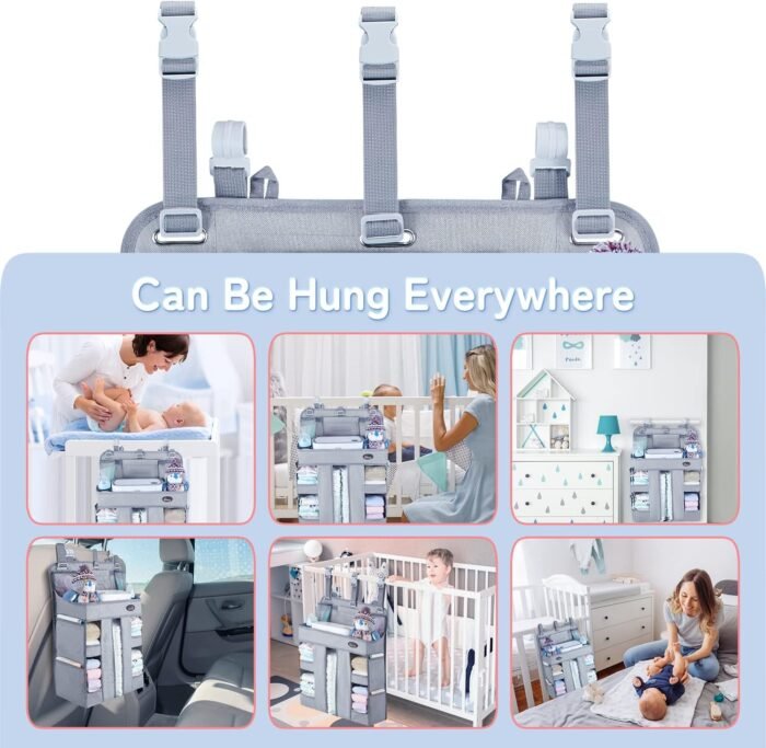 👍Multiple Hanging Options: We’ve provided 3 fastening systems to ensure you can install the hanging diaper caddy organizer in the most convenient location for you. The organizer features 2 C-clamp hooks, 2 looped eyelets, and 3 adjustable buckle straps, making it easy to install in cribs, changing tables, baby strollers, walls, doors, and even cars – anywhere within reach.