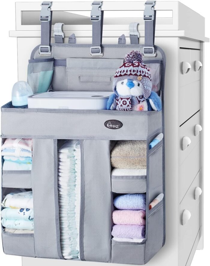 🎁 Great Baby Shower Favor: Are you searching for the perfect diaper organizer? Look no further! The HHZ large hanging diaper organizer is the ideal baby shower favor for new parents. This durable, waterproof, and easy-to-clean diaper bag organizer does not contain BPA, and the light gray color is perfectly suited for babies and can be easily integrated into any baby room decor. Don’t hesitate to choose us.