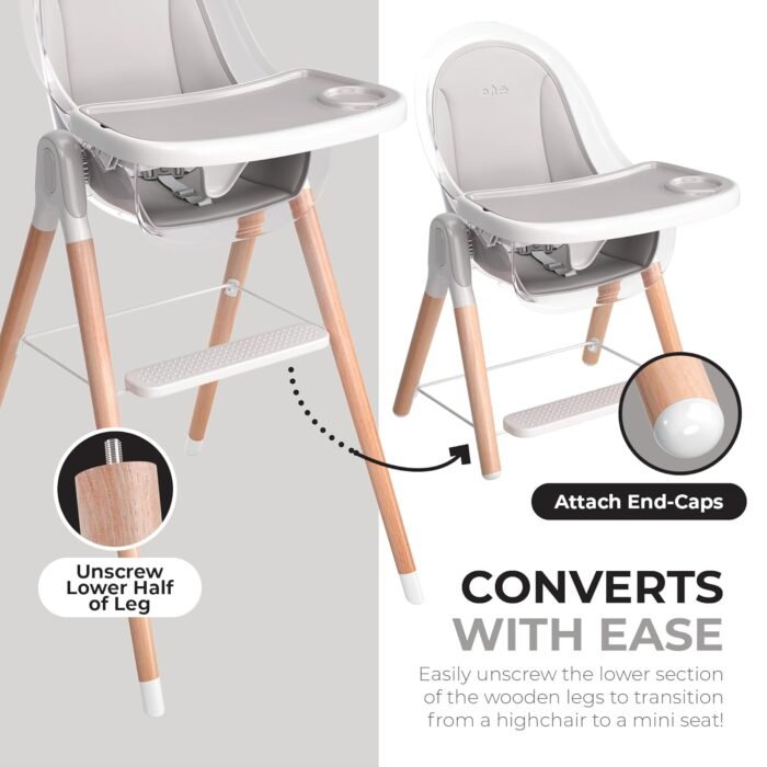 TRANSITIONS WITH CHILD – The removable tray and legs make it easy for this high chair to change to your growing child. Our design allows for you to use this from ages 6 months to 6 years old as a high chair, or kids chair.