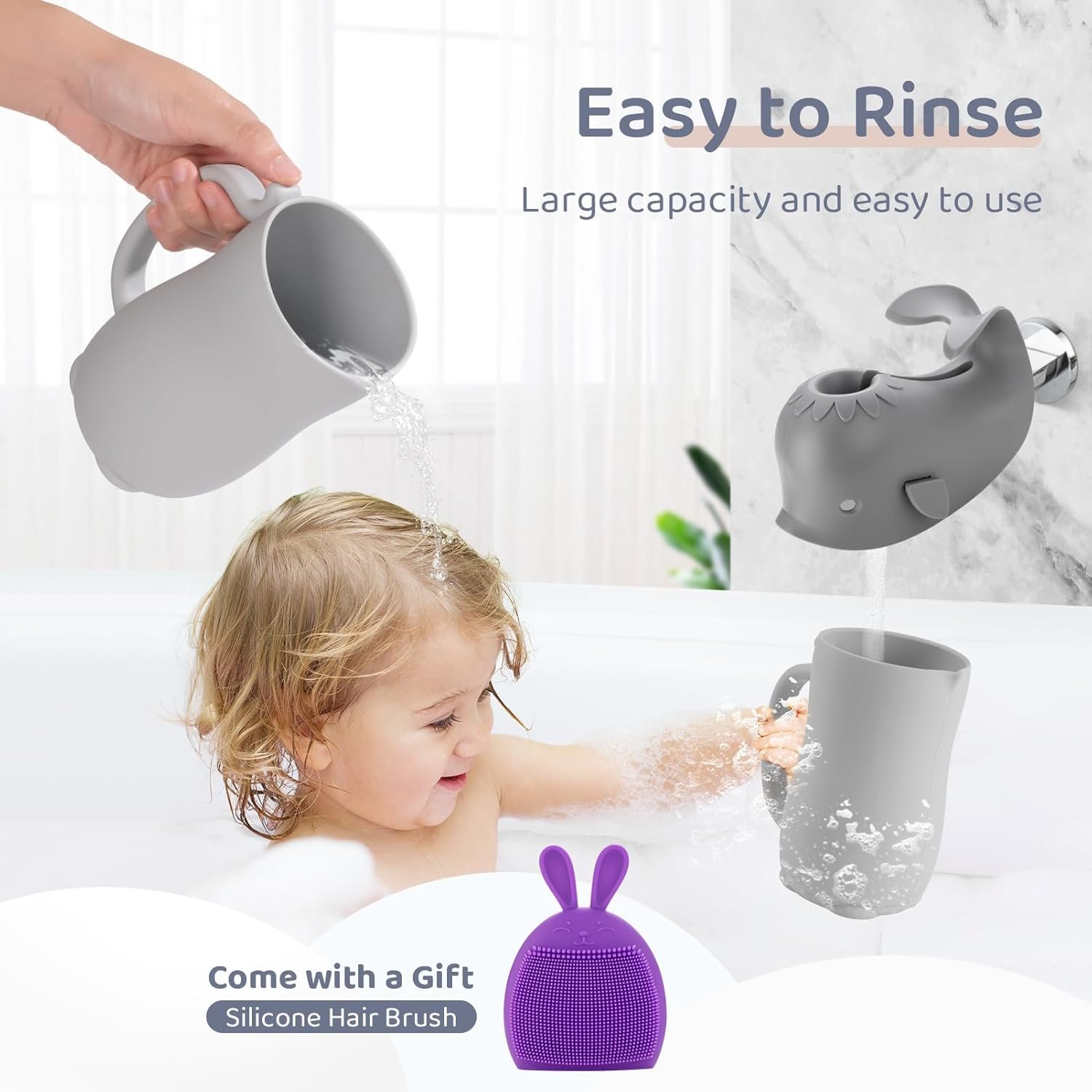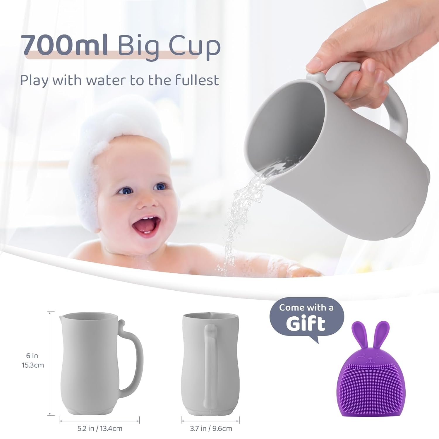 Premium Silicone Comfort: Made from top-notch food-grade silicone, the Baby Bath Rinse Cup isn’t just delicate on your infant’s sensitive skin but also emanates a relaxing aura with its pleasing color. The textured exterior and ergonomic handle ensure a firm and cozy grip while pouring.