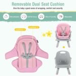 【Easy to Clean with Removable Tray & Cushion】 Ease of cleaning! The food tray can be fully detached and dishware safe. And double layer cushion can also be removed to wipe with a wet cloth. Parents can easily clean this feeding chair after a messy eating time and makes nursery a easy thing.