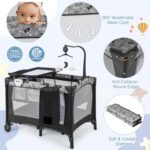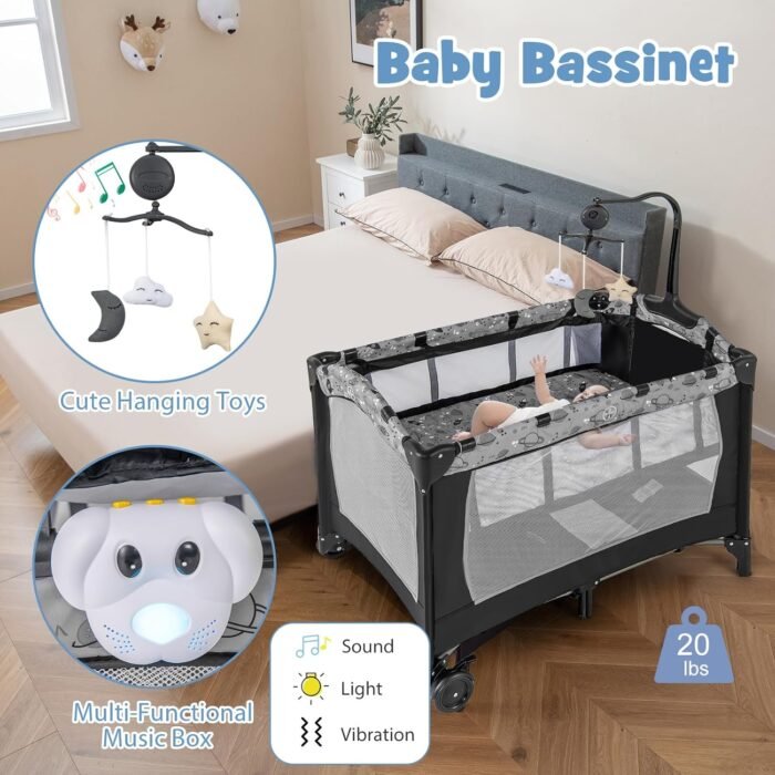 【Mattress Provides Optimal Comfort】:The pack and play with bassinet comes with comes with a wearable and comfortable mattress that is soft and breathable, giving children a comfortable place to play. If you want to add more comfort, the 38 “x 26” mattress pad fits comfortably with no gaps.
