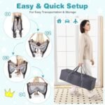 【Easy to Move, Fold & Carry】 The baby playard is fitted with 2 lockable wheels, allowing you to easily move and stop it anywhere you want. Without using any tools, you can quickly fold it into a compact size. Even better, the provided carrying bag helps store the folded crib, which brings great convenience for transport or traveling.