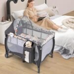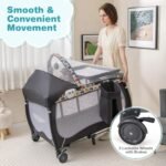 【4 In 1 Multipurpose Design】This HONEY JOY 4 in 1 pack and play can be used as the baby bassinet, diaper changing table, baby playpen, baby playard, which accompanies baby’s growth from 0-36 months.