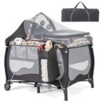 Description: The 4 in 1 pack and play is the perfect solution for parenting and nursing! It can be used as baby bassinet, diaper changing table, baby playpen, or baby playard, to meet your baby’s various growing stages from 0 to 3 years. With the changing station and built-in side storage bag, diaper changes become a breeze. And when the baby wakes up, hanging toys will quickly attract his or her attention. When it’s time to travel, you can simply fold it and store it in the provided carrying bag. Features: 4 in 1 design: baby bassinet, changing table, baby playpen, baby playard Baby playard allows for easy parent-child interaction Changing table firmly holds baby when changing diapers Side storage bag well organizes baby’s essentials like diaper, milk bottles Easy to set up and fold in only several steps without using any tools Provides a storage bag to store the folded crib for convenient carrying ASTM and CPSIA certified, much safer for baby to use Specifications: Material: Oxford Cloth, Sponge, Iron, PP Basic Baby Playard Size: 40″ x 28.5″ x 29″ (L x W x H) Changing Table Size: 28″ x 19″ (L x W) Carry Bag Size: 29.5″ x 8.5″ x 8.5″ (L x W x H) Mattress Size: 38″ x 26.5″ (L x W) Weight Capacity of Diaper Changing Table: 20 lbs Weight Capacity of Baby Bassinet: 20 lbs Weight Capacity of Baby Playard: 33 lbs Suitable Age: 0-36 months Net Weight: 22 lbs Package Includes: 1 x Pack and Play 1 x Instruction