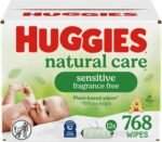 12 flip-top packs of 64 Huggies Natural Care Sensitive Baby Wipes, Unscented (768 wipes total), packaging may vary