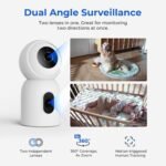 True 3K+3K Clarity with Full Color Night Vision: Each lens captures at 3K resolution, delivering three times the sharpness of standard 1080p indoor cameras. Whether you’re checking on your baby, pet, or valuables, everything is vivid, even in complete darkness.
