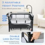 BABY BEDSIDE SLEEPER MODE: This bedside crib has 3 adjustable height setting of 24″/26.5″/29.5″ to match the height of different beds as much as possible. Furthermore, safety belt attached to the bed frame can improve the stability of the baby crib