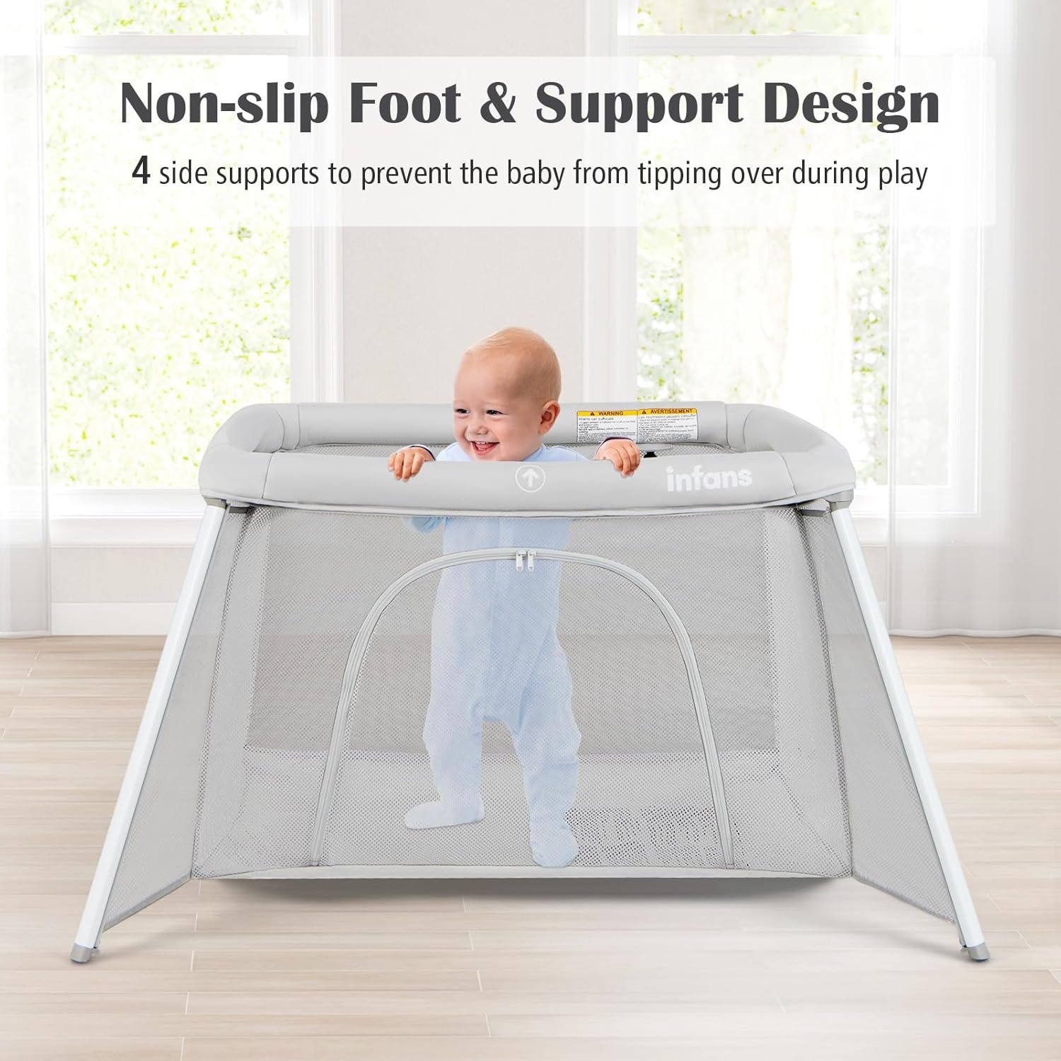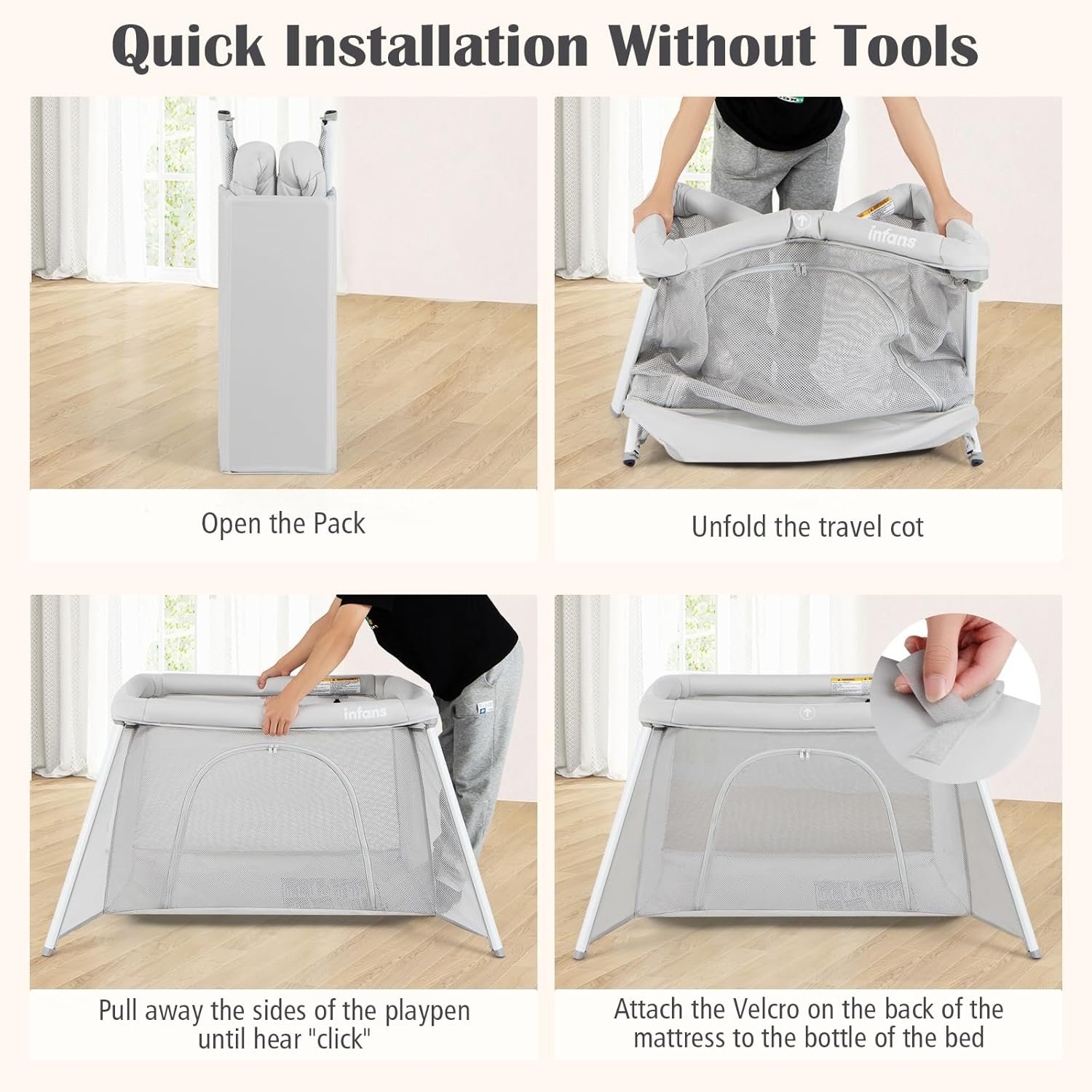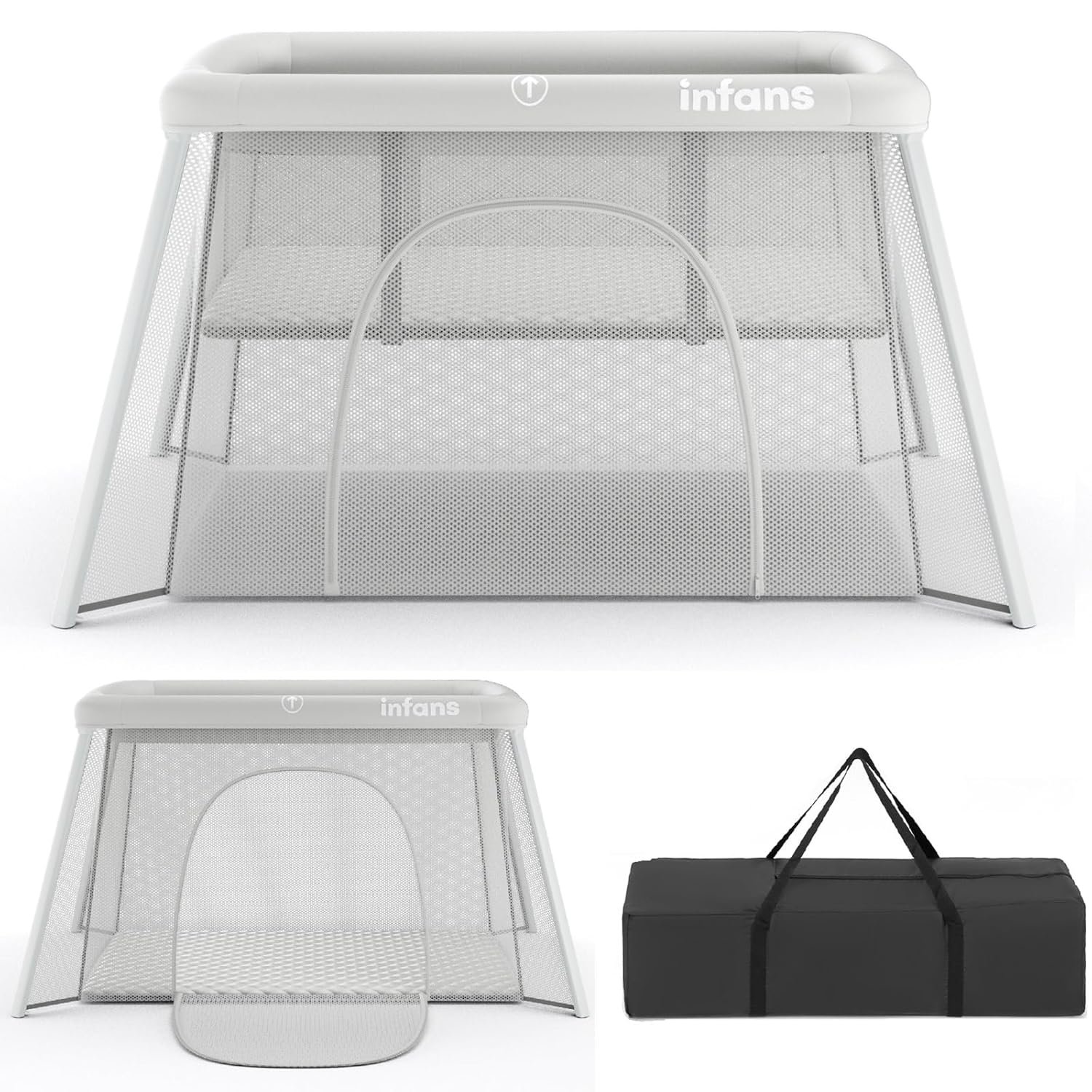 Easy to Carry & Clean: INFANS lightweight baby crib features aluminum tube structure that is 20% lighter than the iron tube structures commonly found on the market, making it perfect for parents to bring on airplanes during outdoor travels. Additionally, this crib does not require any additional tools for installation and can be easily folded in just a few steps to fit into the included carrying bag.