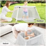 Safety & Stable Design: This portable baby playpen features a stable trapezoidal design, ensuring even bottom support to prevent the newborn bed from tilting and enhance stability for toddler to play safely. Additionally, the zipper door design allows for easy opening to place the baby inside or crawl in and out more easily.