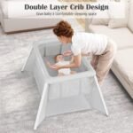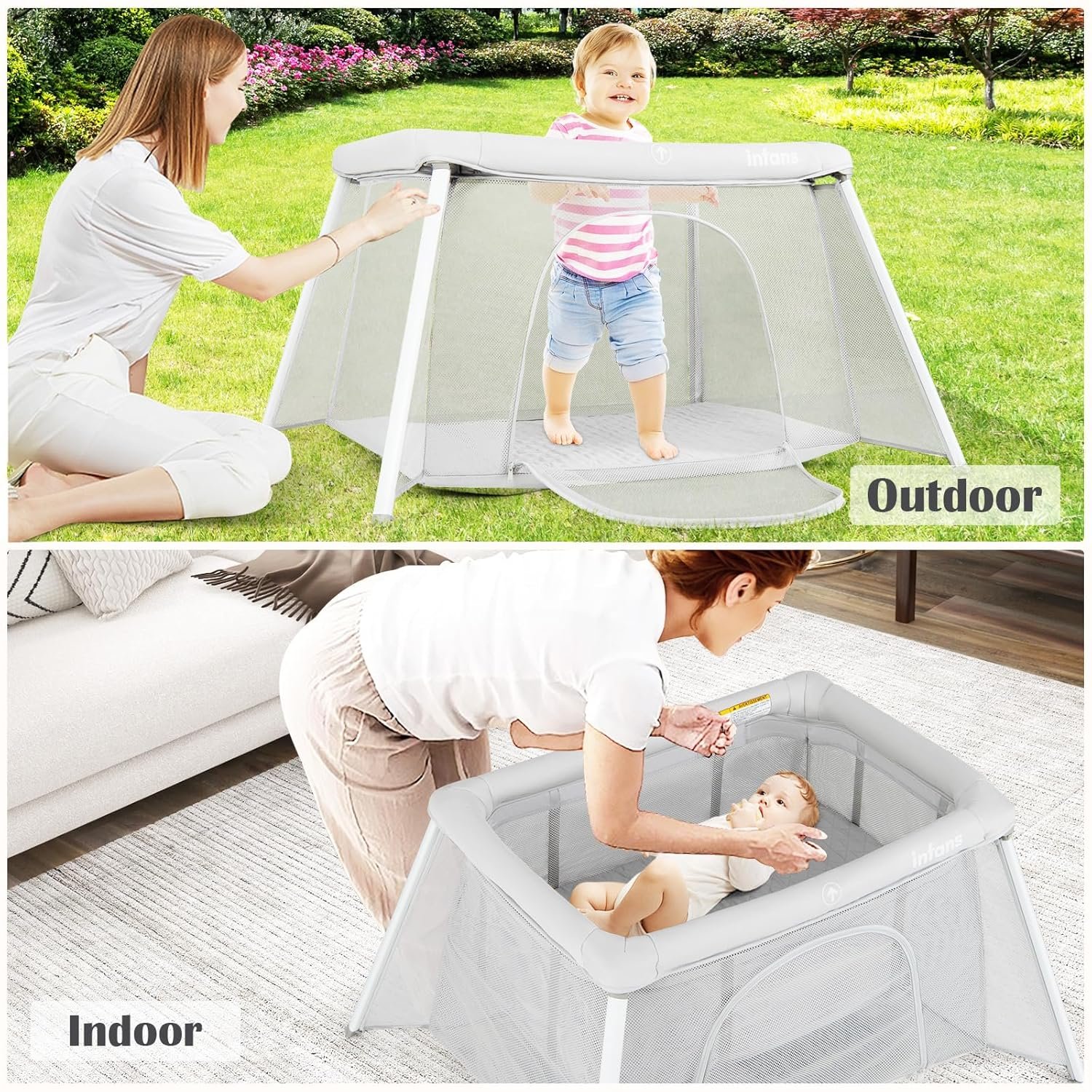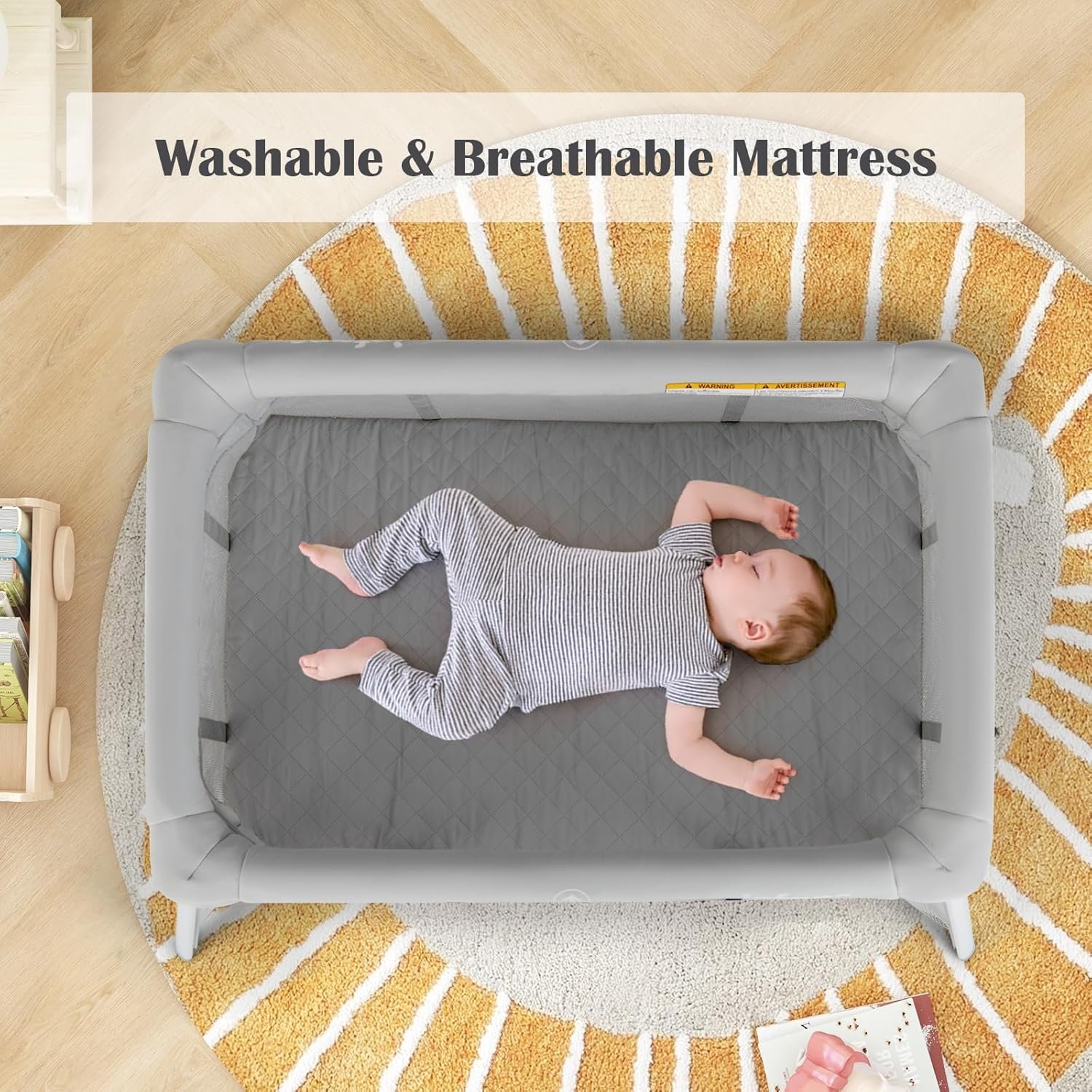 Comfortable Sleeping Space: The INFANS baby bed comes with a soft mattress to ensure the baby sleeps more comfortably. The fully breathable mesh design allows parents to observe the baby more conveniently. The mattress cover can be easily removed for cleaning. (Mattress size: 36.5″ long x 24″ wide).