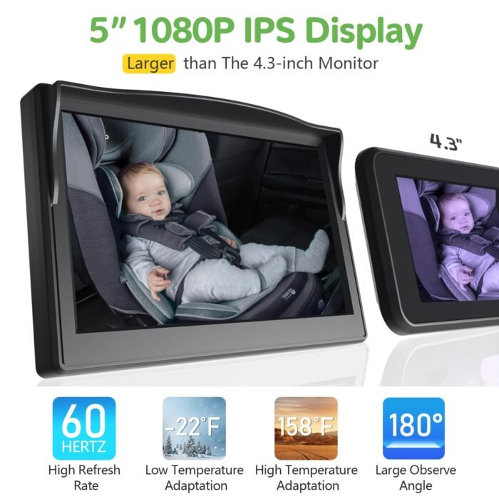 1080P HD & 149° Wide Angle:IPOZITO double car camera for 2 baby has an ultra-wide-angle field of view of 149° and uses true AHD 1080P resolution full-color image technology to provide parents with clearer and more vivid color images, allowing them to see every move of the baby. Compared with other baby car camera, IPOZITO car monitor for baby has the advantages of no afterimage, minimized glare and enhanced viewing angle.