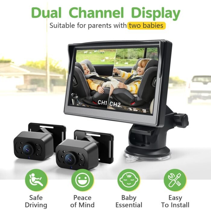 Dual Baby Car Camera:The car camera for baby 2 cameras allows you to check on them through the integrated display on your dashboard, ensuring they’re sleeping soundly. The dual car camera baby monitor provides parents with peace of mind and improves driving safety by eliminating the need to fumble with rearview mirrors or twist around in your seat to check on your kids.With its innovative design and practical features, it’s the perfect way to keep an eye on your kids and enjoy a stress-free drive.