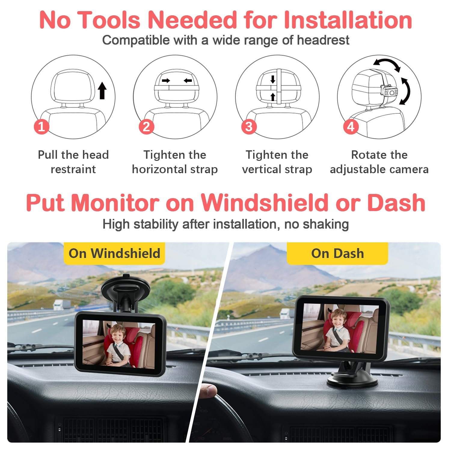 【5 Minutes Quick Install】Easier to install than other baby car cameras, no need to adjust the angle frequently, and will not shake while driving, always maintain a comfortable observation angle. More safe and convenient.