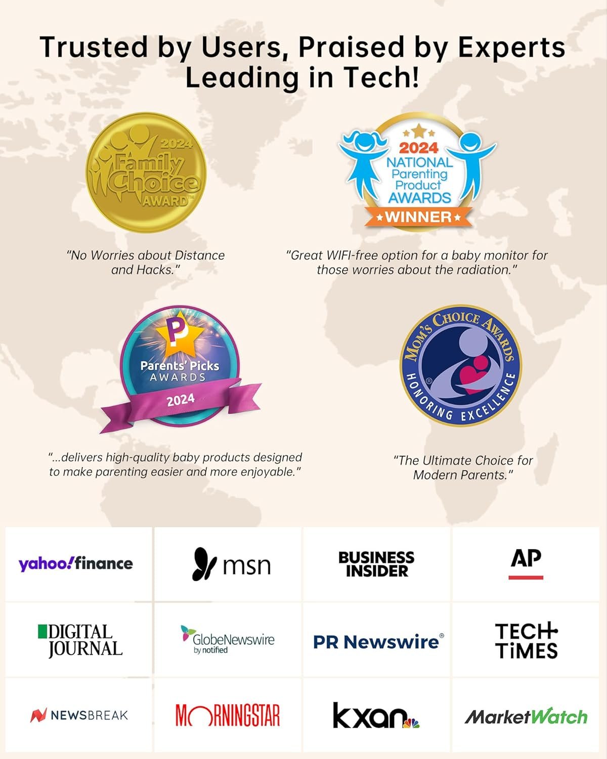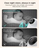 [No Details is Spared with 2K 5.5” Split-Screen Display] You can view two baby cameras at the same time. The 2K camera is more than twice as clear as other 1080p cameras, whether it’s day or night. Even in low light or dark areas, your baby will always be visible. Featuring 4X zoom, infrared night vision, and 360° coverage, you can monitor your baby’s surroundings without missing any details, day or night. Vibrant color calibration ensures lifelike images, making you feel your baby is right beside you – clearer and safer!